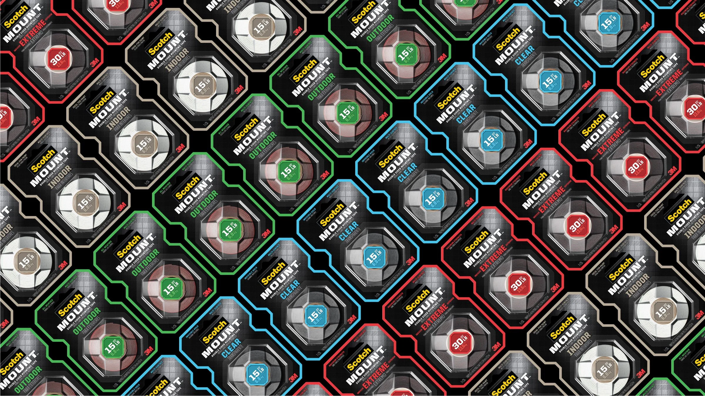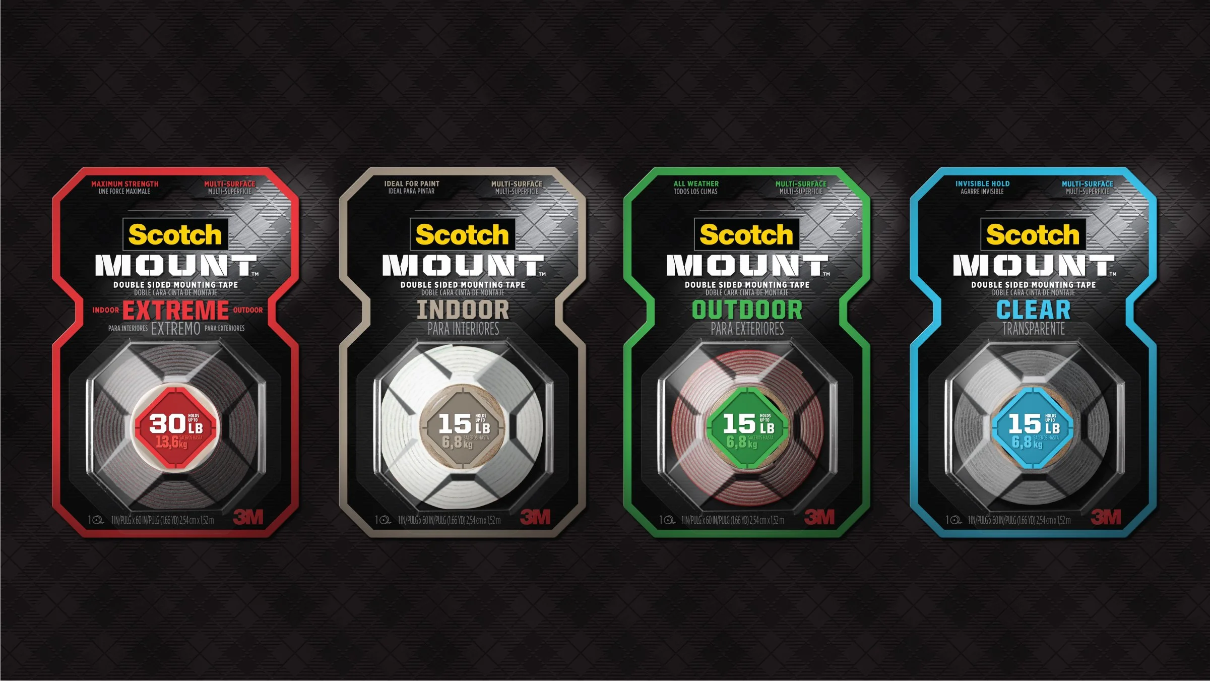 Renowned for its magical taping abilities the world over, though not yet famous for its commanding strength, Scotch brand tape came to BAKER looking to bolster the brand’s hefty holding credibility, particularly in the aisles of home improvement stores. Harnessing the power of their proprietary plaid in a mighty metallic finish gave the new MOUNT segment a burly breath of audacious authority while a backer card remarkably reminiscent of brawny barbells added weight to the new sub-brand’s stalwart status. Finally, the use of highly effective, high-contrast colors was enlisted to do the last bit of heavy lifting – segmenting the line with clear usage occasions.